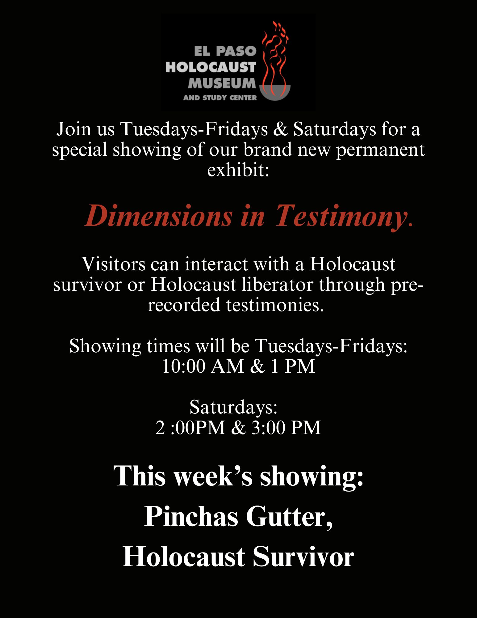 Tuesday September 2nd- Saturday September 6th: Pinchas Gutter, Holocaust Survivor