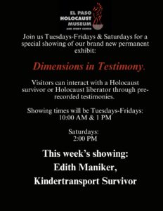 December 2nd- December 6th: Edith Maniker, Kindertransport Survivor