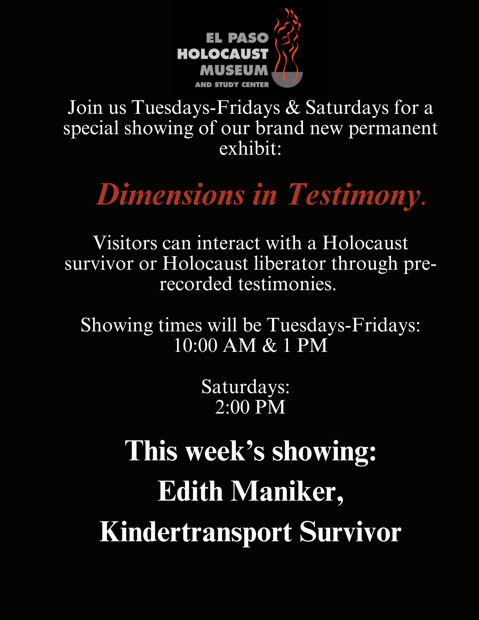 Join us Tuesdays-Fridays & Saturdays for a special showing of our brand new permanent exhibit: Dimensions in Testimony