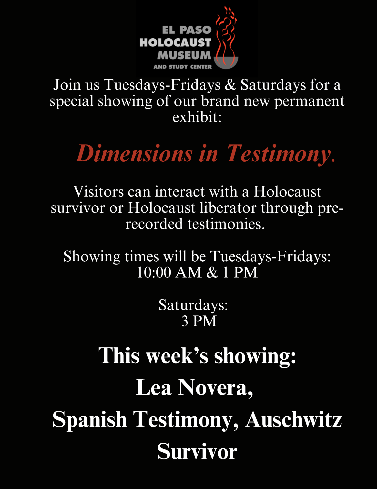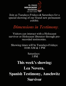 Saturday October 25th: Lea Novera, Spanish Testimony, Auschwitz Survivor